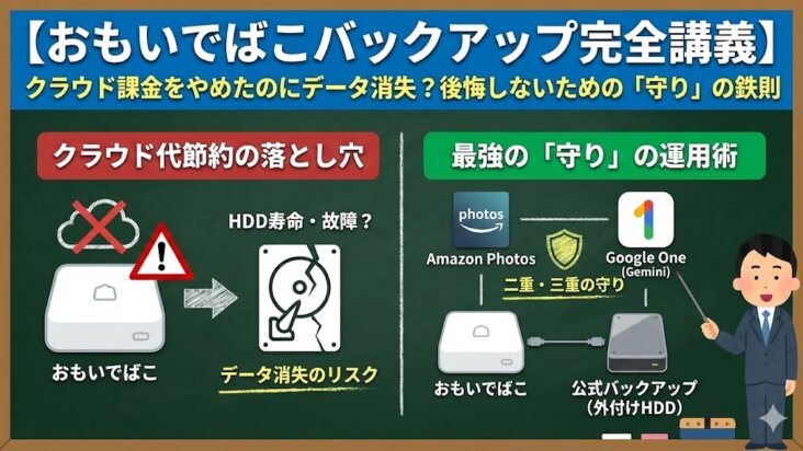 その他【おもいでばこのバックアップ】クラウド課金をやめたのにデータ消失?後悔しないための「守り」の鉄則