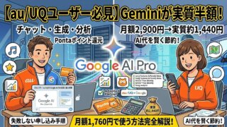 もちろん、ドコモには他のメリット(回線品質、ファミリー割引など)もあるので、AIのためだけに乗り換える必要はありません。ただ、「ちょうどキャリアの見直しを考えていた」という人には、UQモバイルへの乗り換え + Google AI Proという組み合わせは検討の価値ありです。
